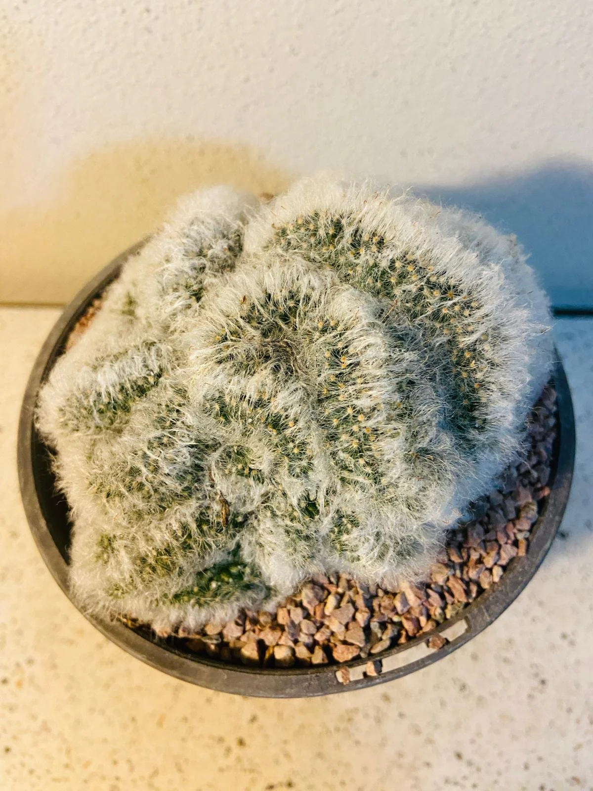 Crested Growth Form: Unlike the typical globular shape of the standard Mammillaria bocasana, this crested form exhibits a fascinating fan-shaped or brain-like growth, creating a truly unique and eye-catching display.